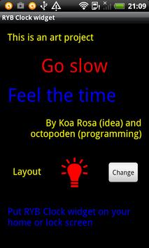 This is an art project. You may install RYB Clock as widget or on the lock screen (if your android version supports this).