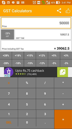 this calculator is display gst amount result on single click. fastest gst calculator in India.