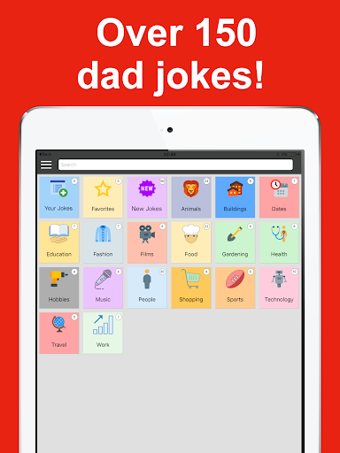 Dad Jokes - A Collection of Puns and Corny Jokes has jokes by category, so you can find the giggle you need at the touch of a button.