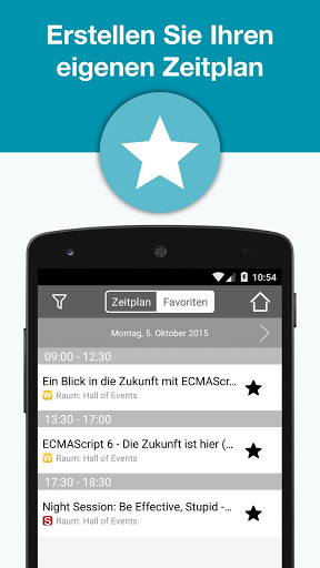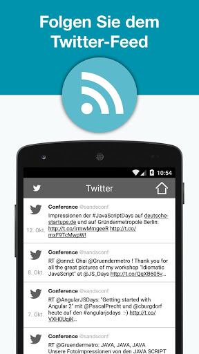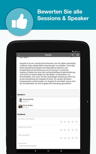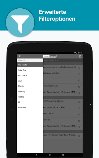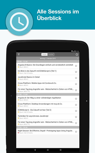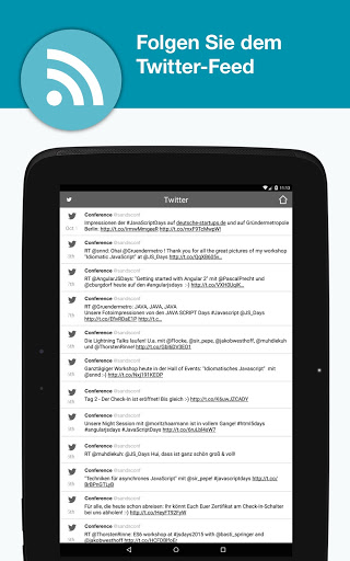 Katılımcılar konferans uygulamasıyla bitirebilir ve bireysel programlarını önceden bir araya getirebilirler. Uygulamayla, hoparlörler ve zamanlamanın yanı sıra bir konuma genel bakışla ilgili bilgileri içeren programa erişebilirsiniz. Konferansta, katılımcılar her zaman şimdi hangi farklı alanların dersleri şu anda çalışıyor ve bu da kısa bir süre önce başlayacak. Sık Kullanılanlar işlevi ile, vurgular işaretlenebilir ve her zaman görünümde tutulabilir. Buna ek olarak, doğrudan Twitter Haberleri aracılığıyla, konferansa geri bildirim gönderme imkanı da bulunmaktadır.