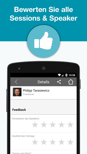 Katılımcılar, bireysel oturumları ve tüm konferansı doğrudan uygulamada değerlendirebilirler.