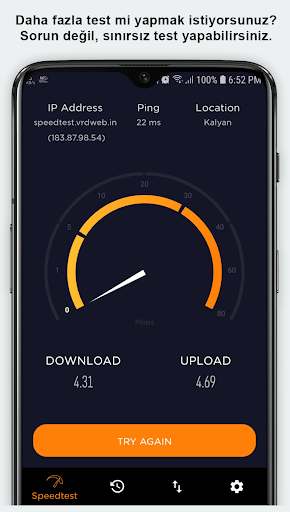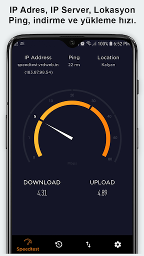 Ayrıca ip adresiniz, ip serveriniz, ping süresiniz, indirme ve yükleme hızınız gibi verilere ulaşın. SpeedTest uygulamamız tamamen ücretsiz olup, dilediğiniz kadar test yapabilirsiniz.