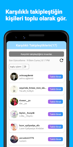 - Karşılıklı takipleştiğiniz kişilerin tümünü detaylıca görün.