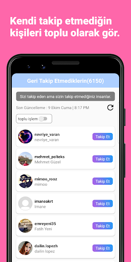 - Toplu takip et özelliği ile kişileri hızlıca toplu olarak takip edebilirsin.
