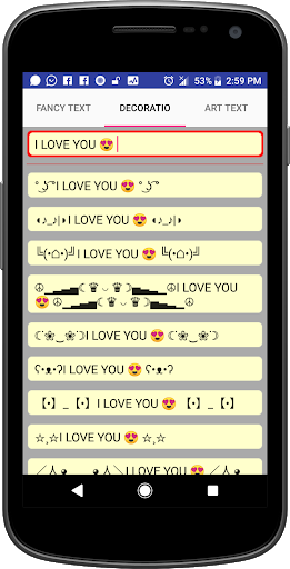 “Stylish Text Art | Stylish Name Design” is very useful app to use the fancy and stylish text in your social media accounts like face book, twitter, whatsapp, LinkedIn, Instagram and also for other social media applications.
