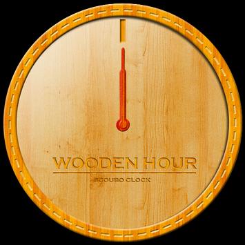 Wooden textured analog clock widget, without numbers. Clear and elegant design.