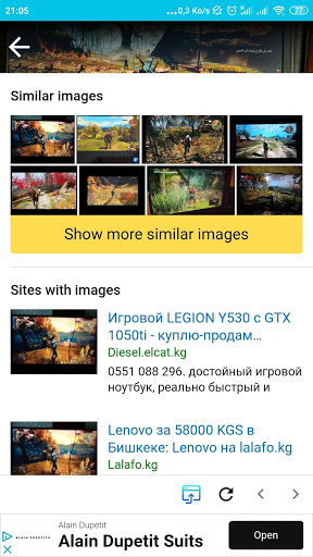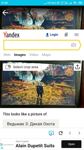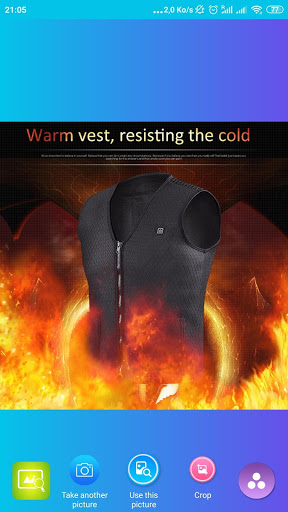 App provides search by image taken from camera or from gallery. Can be used to find information about photo on Google, for example to detect real owner of photo from social network (check if photo is fake). Contains crop functionality.