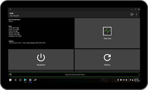 The application has mostly used Linux commands built-in , Task Manager, View important informations about your Linux Machines.