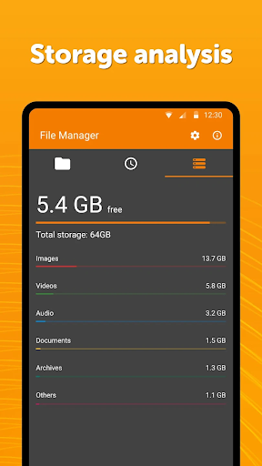 Bu dosya düzenleyicisi, gizli öğeleri koruma, tüm uygulamayı silme veya açma gibi güvenlik ile ilgili birçok güçlü işlev içeren kesinlikle güvenlidir. Verilerinizi özel tutmak için bir desen, pim veya biyometrik kilit kullanma arasında seçim yapabilirsiniz. Gizli öğe görünürlüğünü, dosyaları silme veya tüm uygulamayı kilitlemek için parmak izi izni gereklidir. Surge Dosya Yöneticisi İnternet erişimi olmadan çalışır, nihai gizliliğinizi daha da garanti eder. klasörler. Bu modern medya dosyası organizatörü, kök dosyalarının, SD kartların ve USB cihazların hızlı göz atmasını destekler. Dosya Yöneticisi ayrıca müzik, video, resimler & amp; Belgeler. Belgeleri yazdırmak, bunları düzenlemek veya gerektiğinde zoom hareketlerini kullanarak kolayca okumak için kullanabileceğiniz bir hafif dosya düzenleyicisi içerir. Dosyalarınızı, klasörlerinizi ve amp; Sadece birkaç tıklama ile uygulamalar. Son dosyalarınızı kolayca görebilir ve bir depolama analizi de yapabilirsiniz. Cihazınızdaki boşluğu boşaltmaya yardımcı olacak bir depolama temizleyici olarak işlev görebilir.