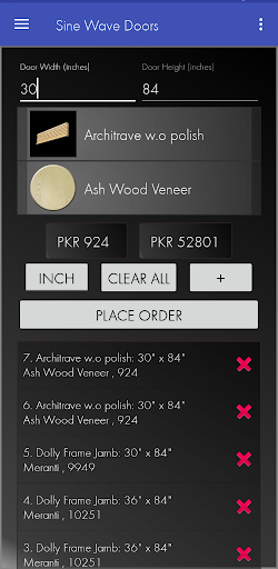 Sine Wave International is a company based in Islamabad which deals in Timber, manufacturing of Doors, Wardrobes, Kitchen Cabinets, Computerized Numeric Control (CNC) Carving/Crafts, Kids and other Furniture. This app makes it easier for our customers to select designs and calculate cost according to their needs. This is a unique concept introduced by Sine Wave Doors, in this industry.