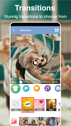 ✔️ Interesting Transitions, music and animation effects in slide show videos