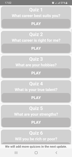 Kariyer Testi, kişiliğiniz hakkında bazı basit soruları cevaplamanız gereken eğlenceli bir kişilik testleridir ve o zaman size en iyi hangi kariyerin uygun olduğunu öğreneceksiniz, farklı konular hakkında 30 sınav var.
