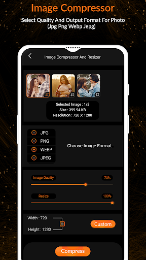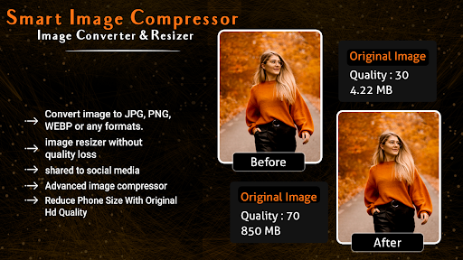 Using this b>Smart Image Compressor : Image Converter & Resizer app make your phone faster and save space in your phone without lse qulity of your images.