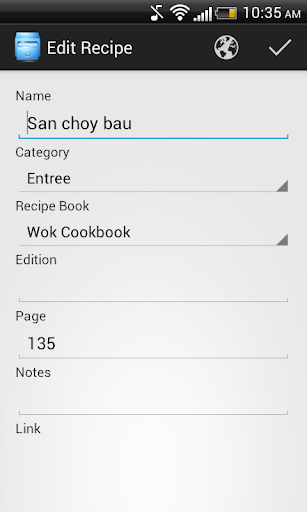 With search facilities on the recipe name, book and category you can find the recipe you want in no time. Or if you can't decide what to cook but know a certain item you want to cook you can easily find a list of potential recipes to choose from!