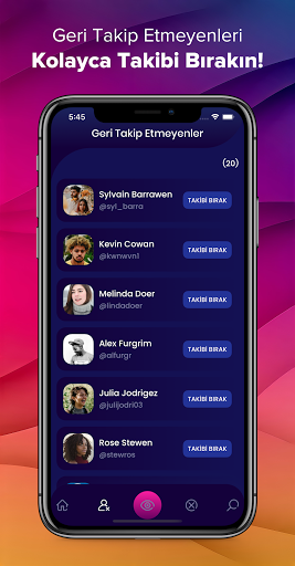 Sizin takip ettiğiniz ama sizi takip etmeyen kullanıcıları keşfedin.