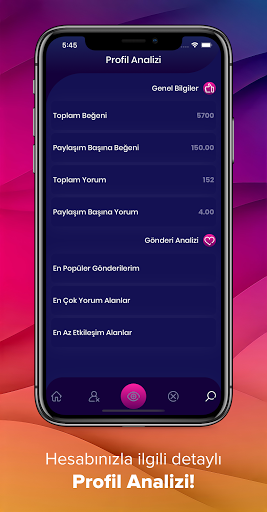Gönderi ve Profil Analizi sayesinde hesabınızın paylaşım performansı detaylarına ulaşın.