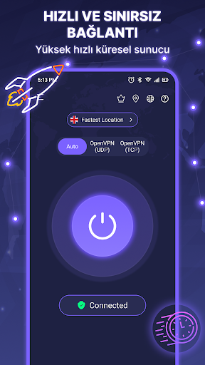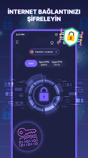 VPN - Fast Secure Proxy, hızlı, güvenli ve özel bir internet bağlantısı sunan Android cihazlar için tasarlanmış bir VPN uygulamasıdır. VPN, bağlantılarınızı şifrelemenize, yeni bir IP almanıza ve nihai çevrimiçi gizliliği sağlamanıza olanak tanır. VPN cihazınızla internet arasında güvenli bir tünel oluşturarak online kimliğinizi korur. Ayrıca, indirme sırasında kötü amaçlı yazılımları engeller ve cihazınızın virüssüz kalmasını sağlar. Uygulamanın yüksek hızlı sunucu ağı, kullanıcıların herhangi bir kısıtlama olmadan özel gezinti yapmasına ve dünyanın her yerinden herhangi bir içeriğe erişmesine olanak tanır, bu da kullanıcıların özel olarak seyahat etmelerine yardımcı olur.
