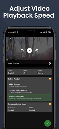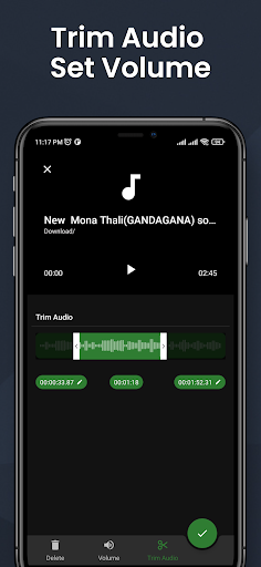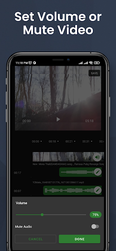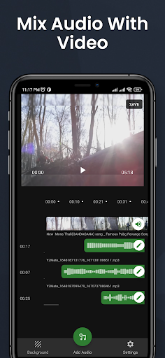 Videoya ses ekle Sesi videoya dönüştürmek için çok hızlıdır.Birkaç saniye içinde Video için ses ekleyebilir.Telefonunuzdan bir video dosyası seçin.Sesi video ile karıştırmak için bir ses dosyası seçin.Sesi video ile karıştırmadan önce Sesi KATIN yapabilirsiniz.Ses dosyası önizlemesini seçtikten sonra Müziği video ile karıştırın .Sesi video ile karıştırmadan önce farklı ses parçasının hacmini de kontrol edebilirsiniz.Başlangıçta orijinal video pisti ve seçilen ses parçası 50-50 cilt olacaktır.Ancak bu parçaların ses seviyesini videoyu video ile karıştırmak için ayarlayabilirsiniz.- Vlog, podcast veya ses için müzik ekleyin