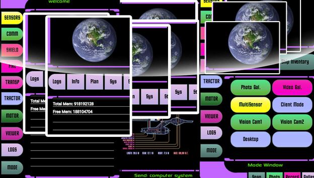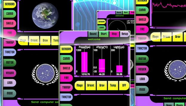 * Remote control your own starship, fire, communications, shields, transporter, viewer, ... (You have to provide the starship, and make sure it is on the wifi router that you use).