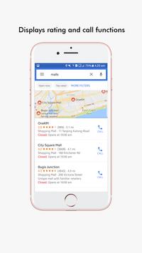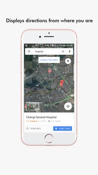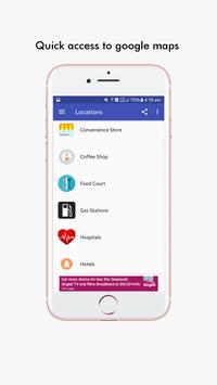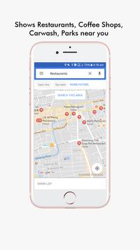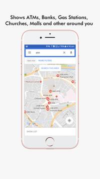 Quickly displays restaurants, hotels, ATMs, hospitals, churches, toilets, taxi stands, convenience stores, banks, car wash, malls, police stations, markets, coffee shops, tourist destinations, parks, library, sports complex and others near you!