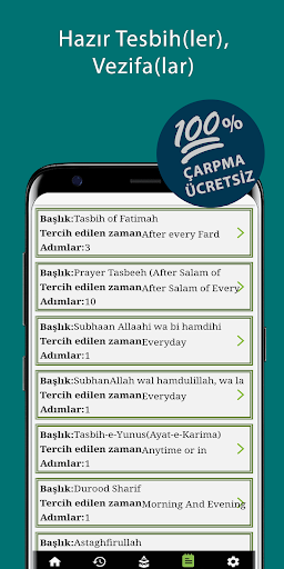 • Tasbeeh Counter Lite, sizi çok aşamalı vezifaların (zikr dizileri) karmaşık yapısında herhangi bir çaba harcamadan, örneğin; tespih Fatıma el-Zahra
