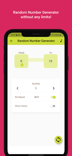 Herhangi bir tamsayı aralığını deneyin, geçmişi görüntüleme, tekrarlama / tekrarlama sayıları.