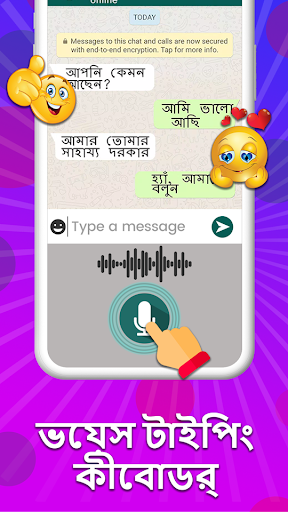 Bangla keyboard enables you to write Bangla with the phonetic Bangla keyboard. The fastest Bangla Keyboard where you can type Bengali. The emojis in the keyboard makes the chats joyful. The keyboard helps to type in English and Bangla both. In-app developed English and Bangla Dictionary helps to check the word correction by spell check. The suggestions will be provided when either of the keyboard is chosen.