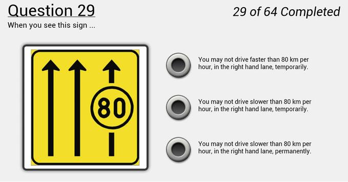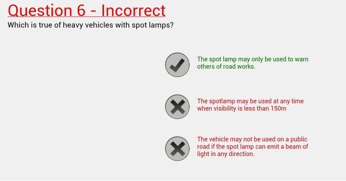 Both the training material and this assessment app are fully aligned with the South African K53 standards, making sure you will pass the first time!