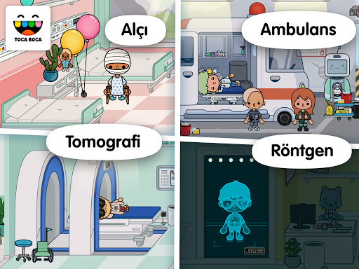 Toca Life: Hospital sağlık kontrolleri, röntgenler ve hastanede gün boyunca olup biten her şey hakkında uydurma hikayeler veya gerçek hikayeler anlatmanıza izin veriyor.