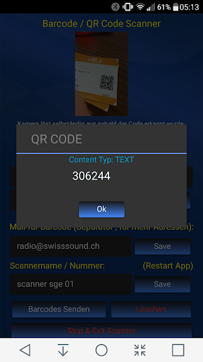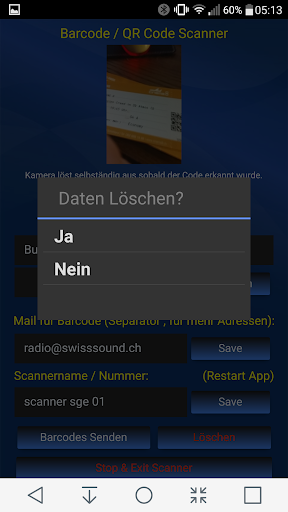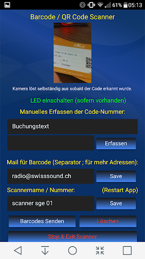 Barcode / QR Code Scanner mit EMail Send Funktion
