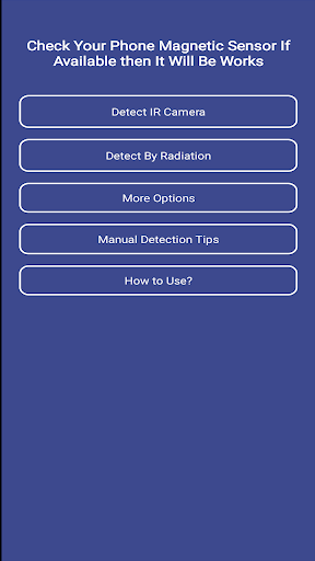 The radiation meter detect hidden spy camera and show the scan result for hidden spy camera. emf finder some time people call as secrets camera finder secrets camera detector secrets camera detection secrets camera detected. open this secrets devices detector app and start detecting of hidden camera.
