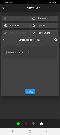 - Kameraya otomatik olarak bağlanması için hızlı yakalama aracı, Kayıt'ı başlatın / durdurun ve kameranın erişilemiyorsa kamerayı kapatın (örn. Motor bisiklet sırasında kask üzerine monte edildiğinde).