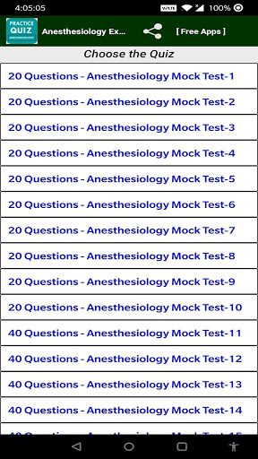 Anesthesiology Exam Prep free app help to prepare Anesthesiology Exam. In this Anesthesiology Exam Prep Free App having more than 1000 Anesthesiology quiz questions for best Anesthesiology Exam Preparation.