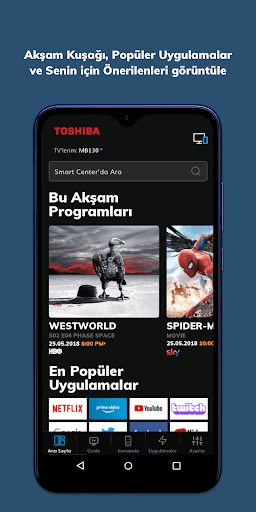 Toshiba Smart Center, Toshiba marka akıllı televizyonlar için geliştirilmiş bir mobil uygulamadır. Uygulamanın kullanıcı dostu arayüzü sayesinde, TV’nizi akıllı telefonunuzdan kolayca kontrol etmenin konforunu yaşayın.