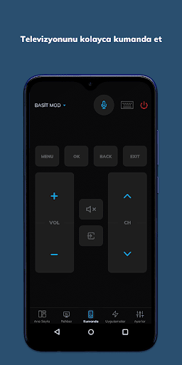 • Televizyonunuzun farklı özelliklerini farklı kumanda modlarıyla (Basit, Uygulama, Gelişmiş, Tarayıcı) uzaktan kontrol edin.