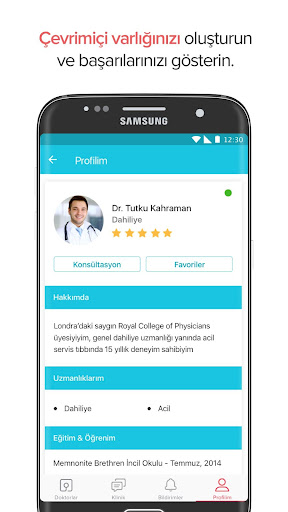 1- Uygulamaya kayıt olduktan sonra, kimlik bilgilerinizi ve tıbbi ruhsatınızı doğrulayacağız, ardından hizmetlerinizi, başarılarınızı yıllar içinde kazandığınız sertifikalarınızı belgelemeye başlayabilirsiniz. Profilinizi oluşturabilirsiniz.