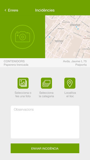 gestión de incidencias en el equipamiento urbano y de participación ciudadana. Permite a los ciudadanos de Paiporta notificar directamente al ayuntamiento en tiempo real, diversos tipos de incidencias,
