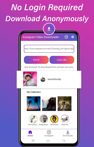 - Video Downloader Application, video indirmek için 2 yöntem verdi Bunlardan biri, videoyu indirmek için video indirmektir. Bağlantıyı ve geçmişi kopyalayabileceğiniz videoyu indirmek için Instagram tarayıcıya giriş yapmak zorunda değilsiniz ve videonuzun indirilecek.