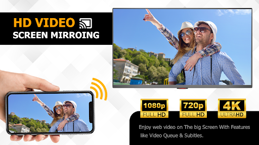 HD Video Screen Mirroring Cast if you are not having fun by looking at your small cellular phone screen, you will get a great big screen phone experience by connecting your phone to a TV screen with screen mirroring with Screen Mirroring All TV App.