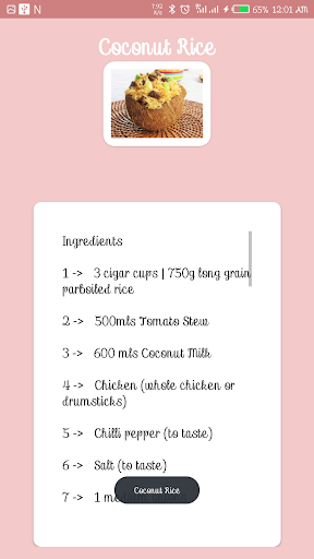 PS: if you wish to learn about any other dishes that's not listed yet on the app, do well by contacting the developer and it will be added to the newer version of the app.