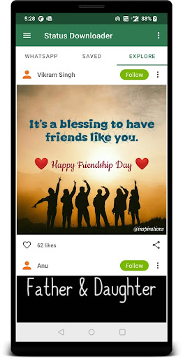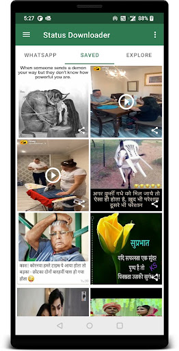 WhatsApp uygulaması için Durum İndiricisi, WhatsApp'taki insanlar tarafından belirlenen durumların görüntülerini, gifini, videosunu indirmenizi sağlar.Uygulamadan arkadaşlarınıza, WhatsApp durumunuza veya başka bir yere paylaşmanıza olanak tanır.br> 1.Önce WhatsApp uygulamanızdaki durumu izlemelisiniz.