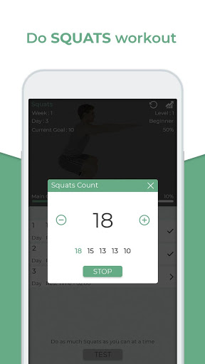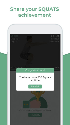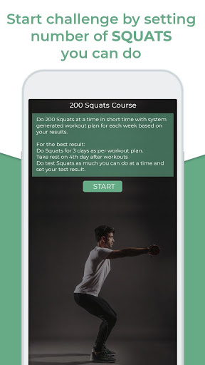 200 Squats Workout Challenge helps you to increase amount of squats up to 200 at a time in short time with system generated workout plan for 3 days based on your test results.