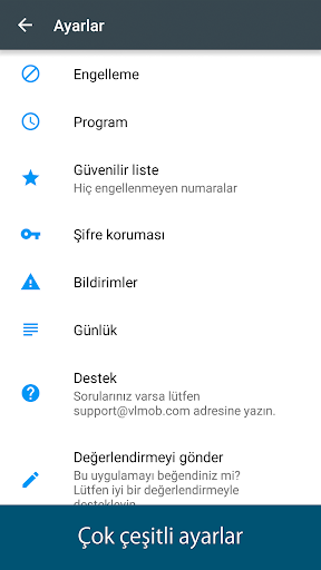 Çağrı engelleyici ve aynı zamanda etkili SMS engelleyici. İstenmeyen çağrıları ve spam mesajları engeller. İstediğin her numarayı kara listeye alabilir veya engelleme seçenklerinden birini etkinleştirebilirsin: "Gizli numaralar", "Bilinmeyen numaralar" veya "Tüm çağrılar".