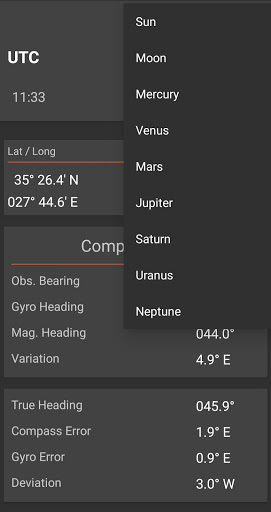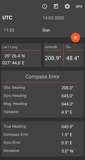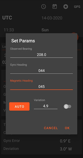 Once the azimuth is calculated, entering gyro bearing, heading, magnetic heading, variation will
