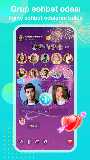 Yüksek kaliteli ses iletimi, diğer insanların sesini net bir şekilde duyabilirsiniz. Aynı zamanda, diğer kullanıcılarla gerçek zamanlı olarak iletişim kurmak için sesli sohbet işlevini de kullanabilirsiniz. Farklı bölgelerden yüzlerce ses odası var, ilgilendiğiniz odayı seçebilir, onlarla sohbet edebilir ve arkadaş olabilirsiniz. Ayrıca size daha fazla eğlence ve etkileşimli işlevler sunuyoruz.