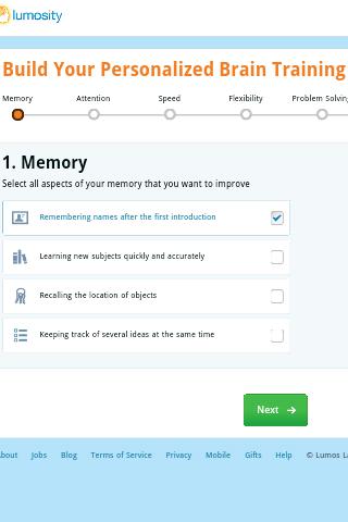 Lumosity Brain Trainer The Most powerful tool we have all our life with us is our brain. And as all other tools from time to time it needs readjustment and maintenance. Lumosity Brain Trainer is a great application for such amaintenance and refinement. Lumosity Brain Trainer allows you to choose the following directions in which you want to train your brain:-To remember people’s names from the very first introduction;-To keep track of several ideas simultaneously;-To learn new subjects more quickly and accurately;-To recall locations of objects.After you choose an area in which you want to be trained, and several other specific parameters, you will be presented with personalized training program organized on the basis of your selection.Lumosity Brain Trainer – Your personal brain couch!