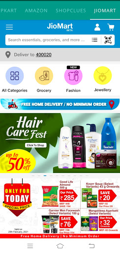 Amazon, Flipkart, Shopclues, Jiomart'ta bir uygulamada.Ürün fiyatlarını yan yana kolayca karşılaştırabiliriz.Kullanımı kolay uygulama.