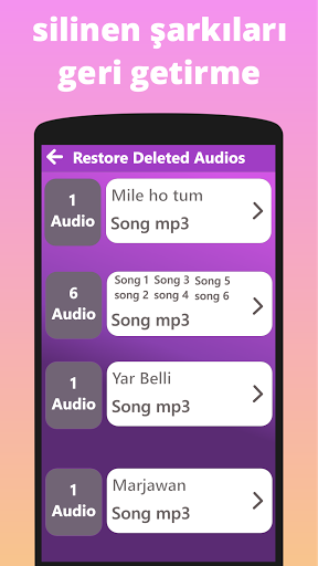 silinen müzikleri geri getirme pro sürümü, silinmiş ses müzik dosyalarını ayrı ayrı bulma ve kullanıcıya yedekleme ve geri yükleme için gösterme gibi en yeni özelliklere sahip gelişmiş sürümdür. Kurtarma sistemini geliştirmek için bize geri bildirim gönderin.silinen müzikleri geri getirme.