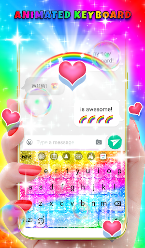 🙌 Rainbow Glitter Klavye Canlı Duvar Kağıdı çarpıcı grafikleri tam bir telefon makyajı için güzel animasyonlarla birleştirir.İnanılmaz grafiklerin ve havalı animasyonun tadını çıkarın ... ücretsiz ve kurulumu kolaydır.🙌