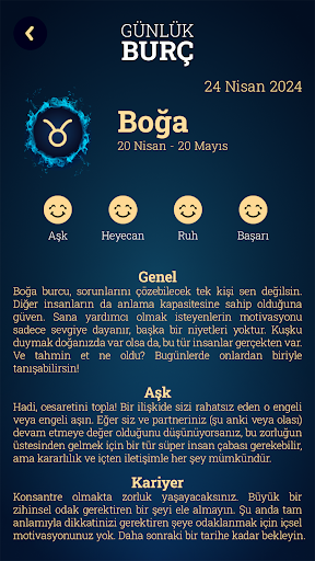 Her zaman sonrasını düşünmelisin. Her gün eğlenceli bir şeyler yapın. Herhangi bir sorunuza evet veya hayır yanıtı almanın en kolay ve en hızlı yolu. Evet Hayır kartından sonra anlamlı ve anlaşılır tavsiyeler gelir. Hiç tarot falı türkçe ücretsiz denediniz mi? Kartları seçin ve onların yorumları size geleceğiniz, aşkınız ve kariyeriniz hakkında fikir verecektir. Ayrıca “ücretsiz tarot falı” bak, kişiliğinizi yorumlayacak ve yolunuzdaki engeller hakkında tavsiyelerde bulunacaktır. Yıldızlar senin hakkında ne söylüyor? Tam doğum haritası analizi oluşturun ve kişiliğiniz hakkında fikir edinin. Mevcut enerji, sıkıntılar veya bilinçaltı etkiler, Kelt Açılımı bu kart okumalarının sadece birkaç yönüdür. Artık istediğiniz zaman doğum haritası çıkarma alabilirsiniz. Bütün burçlar uygulamada. İşaretinizi seçin ve falcı astrolojisinin ve numerolojinin hayatınızı nasıl değiştirebileceğini keşfedin. Tarot Falı Kartları Astroloji ve burçlar 2023 her zaman güvenebilirsiniz. Kendiniz hakkında daha fazla bilgi edinmek için bu burç doğum haritası hesaplama kullanın. Geleceğinizle ilgili şüpheleriniz olduğunda, gizemi nasıl ortaya çıkaracağınızı bilirsiniz. Bu uygulamanın ne kadar yararlı olduğunu gördükten sonra her gün kullanacaksınız. Bu hayatınızı çok daha kolay hale getirecek. İstediğiniz herhangi bir şey hakkında düşünmekten çekinmeyin.